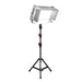 SHAPE's Low Boy Double Riser Stand with Square Legs offers robust support with a black/chrome finish. Max height of 6.9' and 72 lbs capacity. Sturdy stainless tubes with aluminum collars. Solid steel square legs and adjustable 5/8'' stud. Unique extendable leg for balance on uneven surfaces. 31'' footprint ensures stability for your equipment. Elevate your setup with SHAPE's reliable stand.