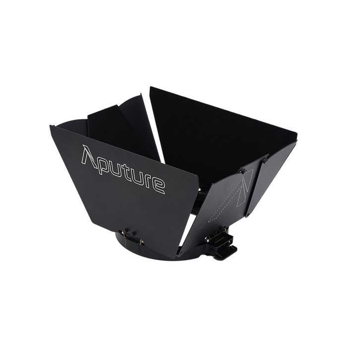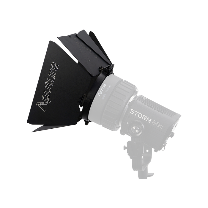 The CF4 Barn Doors mount to the front of the CF4 Fresnel to cut and shape the beam. Four main doors and four slide-out extensions control spill. Additionally, the CF4 Barn Doors can hold a standard 5” scrim to control the light output.
