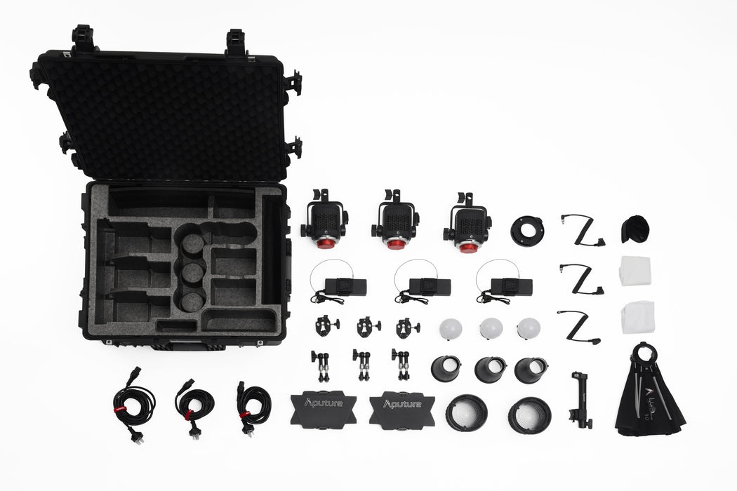 The Aputure STORM 80c 3-Light Kit is a complete, versatile lighting solution centered around three STORM 80c fixtures. This kit provides a versatile setup capable of delivering both hard and soft light, along with multiple rigging and power options.