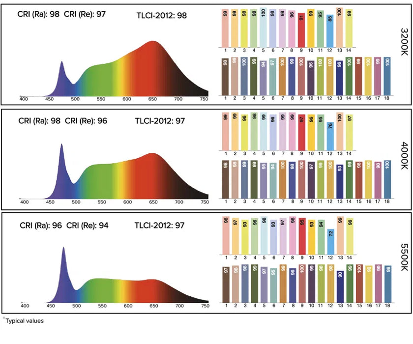 CRI (Ra) / TLCI 3200 – 6500 K* |