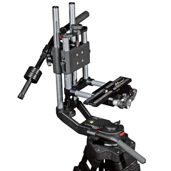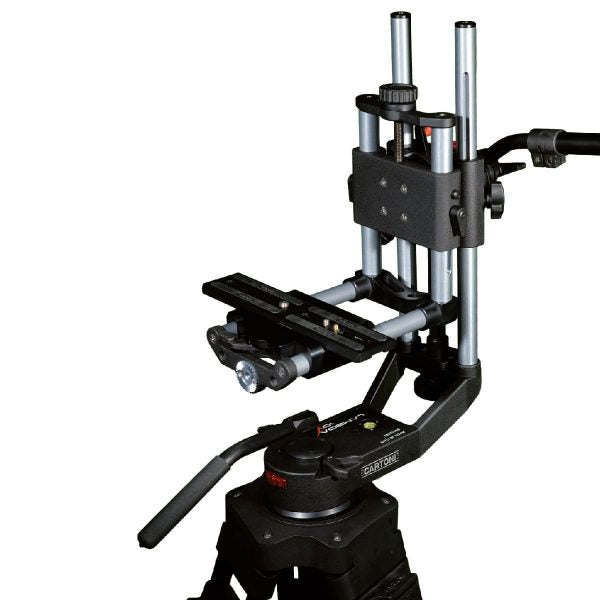 The Lambda 10 is the most compact of the Cartoni nodal heads. Its sturdy aluminum tubes “L” shaped geometry with sliding capability allows the perfect centering of the camera.