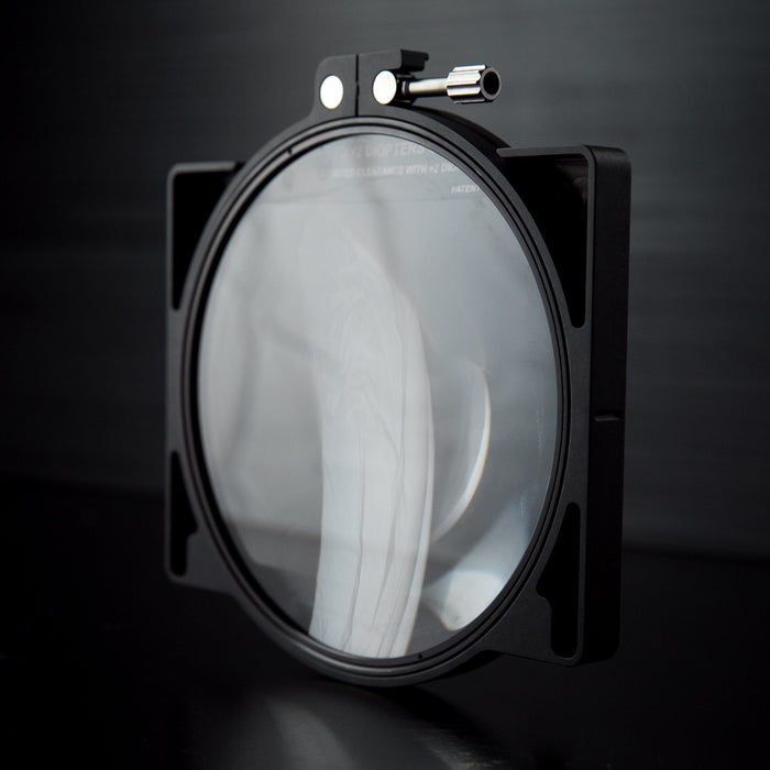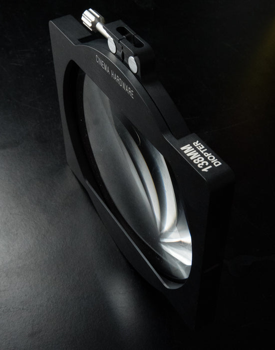 The 138mm diopter tray holds a 138mm diopter in a standard Arri style 4 x 5.65 matte box allowing quick attachment for close focus situations and rendering it unnecessary to tape diopters to the lens. The tray uses two standard width filter tray slots to accommodate up to a +2 diopter. Additionally the tray has two 1/4 – 20 holes on the bottom to accommodate alternative mounting methods.