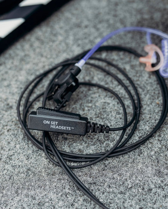 On Set Headsets manufactures high quality walkie-talkie headsets, and is the brand most trusted by film crews and security! Built strong, durable and rugged in order to withstand any environment the special effects department throws your way! Immediately you will notice the difference in the solid internal components that won't leave you ill-equipped on the job. There's nothing worse than having a 4am call, and notice at last minute that your cheap headset doesn't work, and you have to scramble for a new one. The FilmPro Headset is a durable and rugged Motorola radio earpiece known for its dependability, clear sound, and intelligibility and built to withstand: Cold weather down to -14 degrees; Rain towers; Fog machines; Explosions; Desert, snow, humid, wet, and dry climates. Crisp and clear sound & intelligibility. Professional, discrete, and comfortable.
