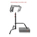 Unique Aluminum Collar Locks to withstand a heavier payload capacity, Load capacity: 25 lb / 11 kg, Min Height: 38’’ / 96.5 cm, Max Height: 65’’ / 165 cm, Folded Height: 28” / 71 cm, Damped springs risers to prevent hand pinching between sections, Captive knobs to prevent loss of parts, Grip heads and arm included, C-stands will nest to save valuable space, Sliding leg for uneven surfaces, and Removable rubber feet included.