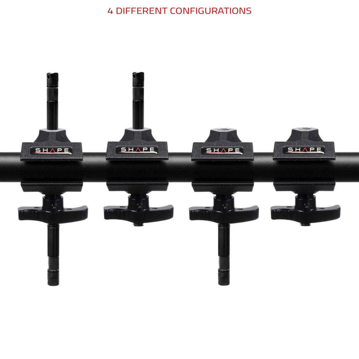 Introducing SHAPE's 3-inch clamp with a unique design offering both center and end jaw configurations. Made of solid steel, it features a special anti-slip material with the vulcanization rubber process, inside the clamp for secure gripping on various surfaces. Equipped with a 5/8-inch anti-rotating baby pin, lockable at both ends, providing stability in any setup. With both end and center jaw configurations, this clamp offers four setups in one, allowing for endless rigging options. The inclusion of a drive screw for the lower jaw eliminates the need for additional tools when unclamping. Versatile and strong, it grips square, round, or rectangular tubing, as well as other common and irregular shapes. Experience convenience and flexibility with SHAPE's multifunctional clamp.
